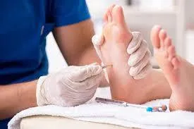 A local anaesthetic is carefully administered to numb the toe, ensuring the procedure is carried out comfortably and without pain.
