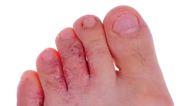 Athlete’s Foot (Tinea Pedis): A fungal infection that causes itching, redness, and peeling skin, especially between the toes. It thrives in warm, moist environments and is highly contagious.